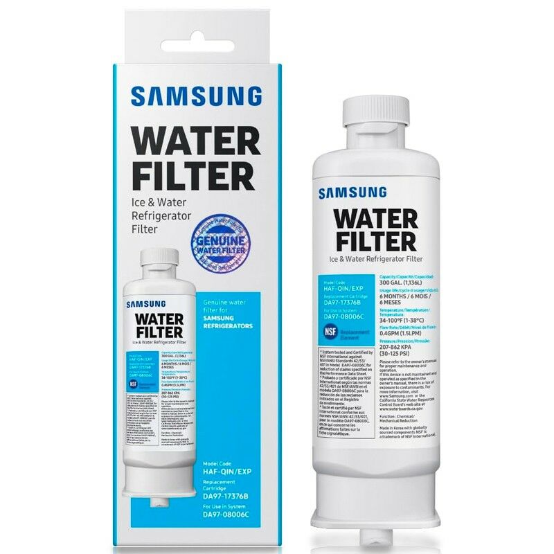 Filtro frigorifero originale Samsung DA97-17376B HAF-Qin/EXP Filtro frigorifero originale Samsung DA97-17376B HAF-Qin/EXP Questo filtro originale Samsung DA97-17376B HAF-Qin/EXP è il filtro interno per i frigoriferi americani side by side Samsung. Viene posizionato all'interno del frigorifero. L'avanzata tecnologia Carbon Block di Coco offre una filtrazione di prima qualità: riduce il cloro, il cattivo gusto e l'odore, la ruggine, i fanghi galleggianti, il carbofurano, l'endrin, il tetracloroetilene, il triclorobenzene, il tetracloruro di carbonio e molti altri contaminanti. Certificato NSF42: testato e certificato da NSF International contro NSF/ANSI 42 per la sicurezza dei materiali, l'integrità strutturale e la riduzione del gusto e dell'odore di cloro. Nessun minerale benefico rimosso: il filtro non rimuove dall'acqua minerali benefici come calcio, magnesio e potassio. Vita utile: 1000 litri di acqua o 6 mesi. Installazione semplice: facile da installare. Compatibilità