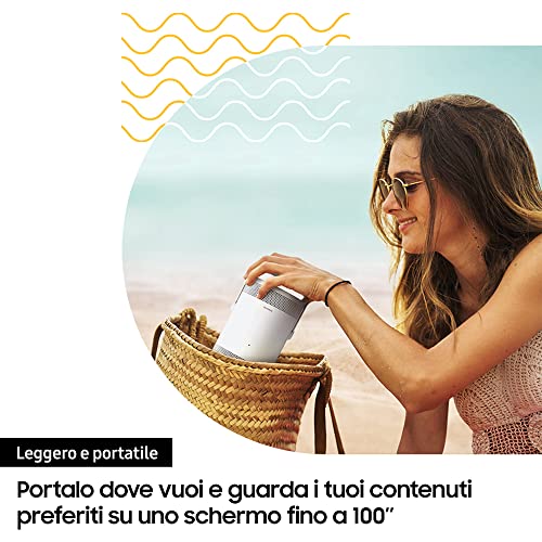 Samsung The Freestyle LSP3B Proiettore Portatile FHD Wi-Fi, schermo fino a 100'', USB, Auto focusing e Leveling, Suono a 360°, Smart TV, Bianco, 2022