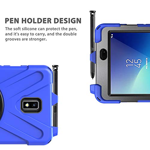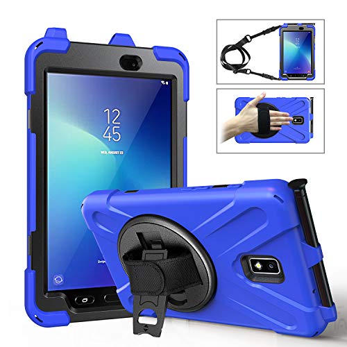 MoKo Samsung Galaxy Tab Active 2 8 Custodia Protettiva in Silicone Anti Graffio con Supporto Girevole 360°, con Cinturino e Tracolla a Mano per Samsung Galaxy Tab Active 2 8 SM-T390/T395/T397 - Blu