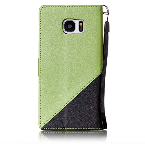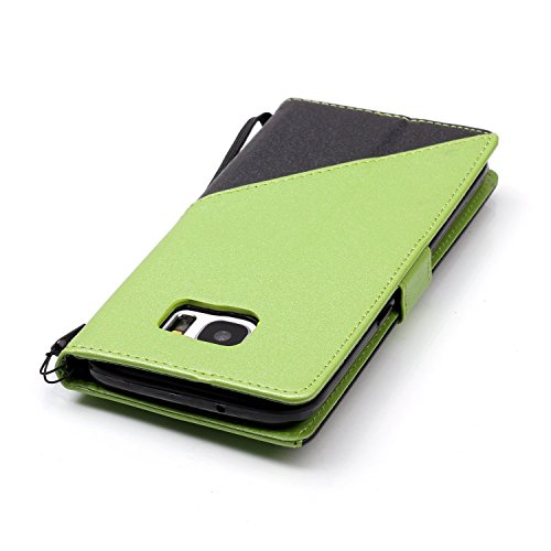 Samsung Galaxy S7 Edge Astuccio (con Gratuito HD Proteggi Schermo) CaseHome Stitching Colore Portafoglio Progettare con slot per Schede e Cinturino da polso Foglio Flip Magnetico Chiusura Stand Caratteristica Interiore Morbido Silicone Paraurti Full Body protettivo PU Pelle Caso Copertina Pelle Conchiglia per Samsung Galaxy S7 Edge-Nero e verde
