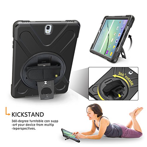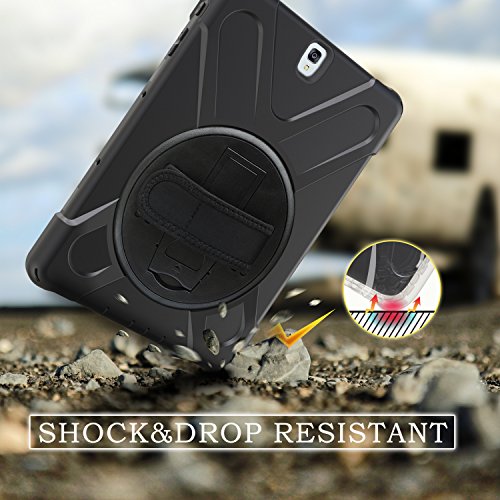 Samsung Galaxy Tab A 9.7 case, Braecn resistente corpo robusto PC silicone custodia con tracolla portatile supporto integrato/cinghia da polso per Samsung Galaxy Tab A 24,6 cm SM-T550/sm-p550 (NERO) (NERO)