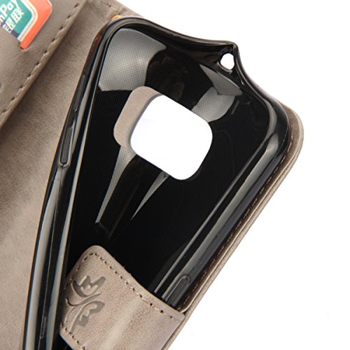 Samsung Galaxy S6 Edge Cover Bumper,Samsung Galaxy S6 Edge Custodia Pelle,URFEDA Neo Morbida Rigida Corda Anti-Theft Puro Completa Donna Ragazza Ragazzo Uomo Rigida PU Leather Flip Libro Bookstyle Wallet Portafoglio Magnetica Disegno Grigio Protezione Cover Case Bumper per Samsung Galaxy S6 Edge