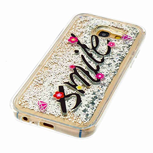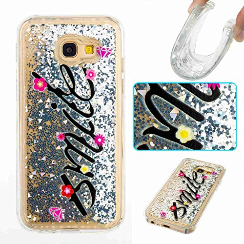 Samsung Galaxy A5(2017) Cover,DecorLife[Gift] Multifunctional Data Line,Liquid Quicksand Bling Adorable flowing Floating Moving Shine Glitter Soft Flexible TPU Silicone Gel Cover for Samsung Galaxy A5(2017)-Smile