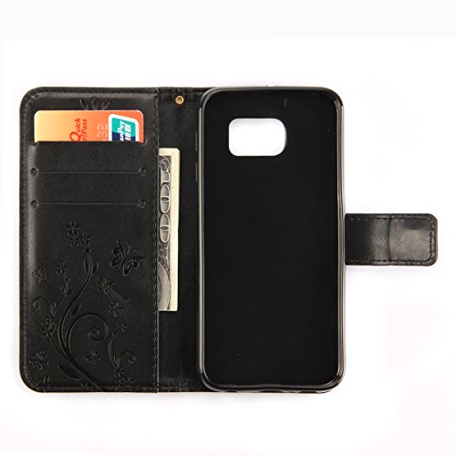 Samsung Galaxy S6 Cover A Libro,Samsung Galaxy S6 Custodia Pelle,URFEDA Neo Belle Morbida Rigida Sottile Slim Vintage Flessible Corda Anti-Theft Puro Completa Donna Ragazza Ragazzo Uomo PU Leather Flip Libro Bookstyle Pelle Portafoglio Antiurto Anti-scratch Semrigida Nero Protettivo Protezione Cover Case Bumper per Samsung Galaxy S6,SM-G920,SM-G9208,SM-G9209,SM-G9200