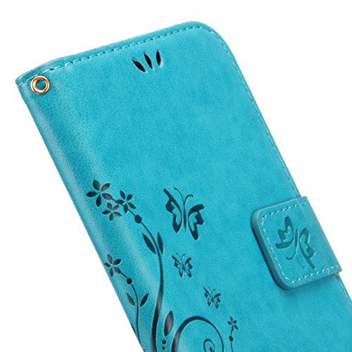 Samsung Galaxy J3 Cover in Pelle,Samsung Galaxy J3 Cover Portafoglio,URFEDA Neo Vintage Belle Corda Anti-Theft Puro Completa Donna Ragazza Ragazzo Uomo PU Leather Flip Libro Bookstyle Pelle Ultra Slim Sottile Morbida Rigida Wallet Portafoglio Bookstyle A Libro Protettivo Antiuroto Resistenza Disegno Blu Farfalla Protettivo Custodia Case Coperture Bumper per Samsung Galaxy J3(2015)