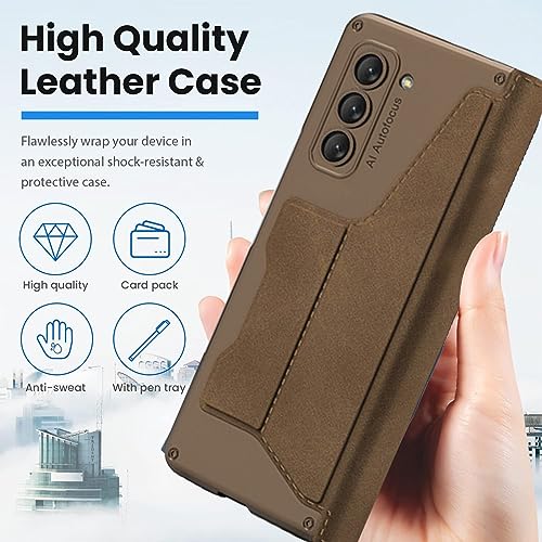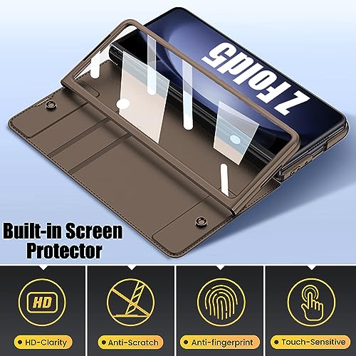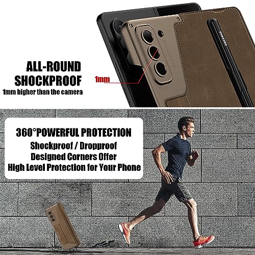 Per Samsung Galaxy Z Fold 5 Cover con S Pen Slot, Protezione Schermo Integrata,[Slot per Schede+Funzione di Supporto] Cover Pelle PU Custodia Antiurto per Samsung Z Fold 5 5G 2023, Marrone