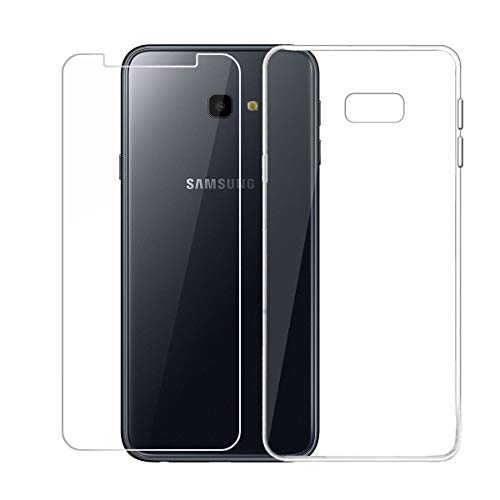 QFSM Samsung Galaxy J4 Plus 2018 Cover Trasparente Silicone Custodia + 1 Pack Vetro Temperato Pellicola Vetro per Samsung Galaxy J4 Plus 2018 SM-J415 (6,0") -Clear