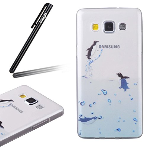 Samsung Galaxy A5 5.0" Cover, Ukayfe Colorful Elegant Design Custodia Ultra Slim Morbido TPU Gel Crystal Clear antigraffio Protettivo Skin Protettiva Trasparente Back Shell Case Cover per Samsung Galaxy A5 5.0 Pollici (2015) Con Free Stilo Penna - Swimming Penguin