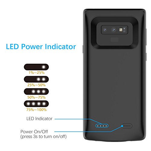 [100% di sicurezza e indicatori LED] Custodia power bank Samsung Galaxy Note 9 smartphone, sicura al 100% con protezione interna del circuito contro surriscaldamento, sovraccarico e cortocircuito. Gli indicatori LED ti permettono di sapere esattamente quanta carica è disponibile e l'interruttore di accensione si accende / spegne la custodia.