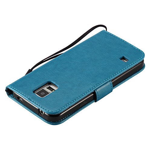 Samsung Galaxy S5 Custodia,Samsung Galaxy S5 Cover Pelle,Cozy Hut Colore Gatti e albero Modello Flip PU Cuoio Custodia in pelle Protettiva Portafoglio Libro Cover Scomparto per carte di credito Wallet Copertura Tacsa Custodia Caso Cover per Samsung Galaxy S5 - blu