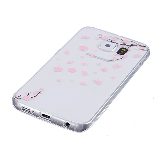 Samsung Galaxy S6 Edge Custodia, CXTcase Galaxy S6 Edge Cover Silicone Trasparente Morbido TPU Custodia Cristallo Limpido Slim Anti Scivolo Custodia Protezione Posteriore Cover Antiurto per Samsung Galaxy S6 Edge Case Prugna Fiore