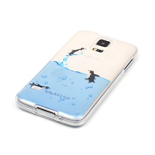 Per Samsung Galaxy S5 Custodia,Funyye Morbida Sottile TPU Gel Silicone Cover Originale Antiscivolo Elegante Protettiva Caso Chiaro Copertura Slim Thin Skin Shell + Pellicola Protettiva per Samsung Galaxy S5 i9600 Trasparente Soft Bumper - Carino Pinguino