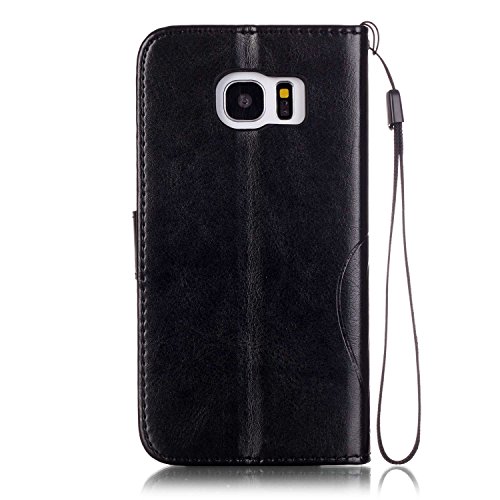 Per Samsung Galaxy S7 Edge Custodia,Funyye Per Galaxy S7 Edge Pelle Libro Copertura Con Cordino Shell Supporto Stand Porta Carte Portafoglio Flip Wallet Cover Chiusura Magnetica Proteggi Caso Elegante Fiori e Farfalle -Nero