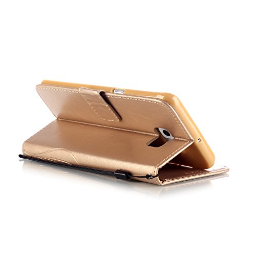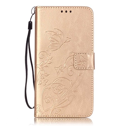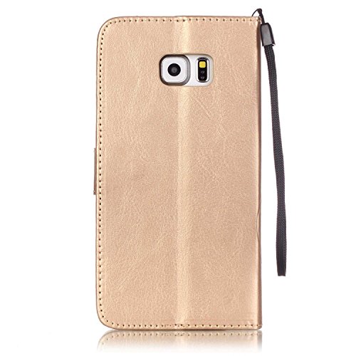 Per Samsung Galaxy S6 Edge Plus Custodia,Funyye Per Galaxy S6 Edge Plus Pelle Libro Copertura Con Cordino Shell Supporto Stand Porta Carte Portafoglio Flip Wallet Cover Chiusura Magnetica Protezione Caso Elegante Fiori e Farfalle -Dorato