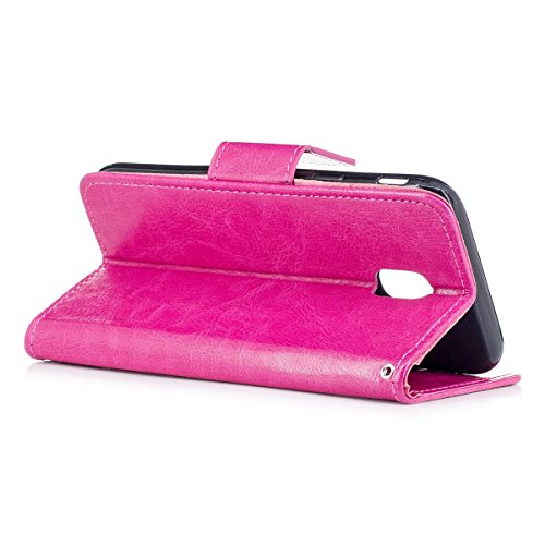 Samsung Galaxy J330 2017 Custodia in Pelle, Cover Custodia Per Samsung Galaxy J330 J3 2017, JAWSEU [Shock-Absorption][Anti Scratch] PU Leather Folio Case Cover per Samsung Galaxy J3 2017 Custodia Portafoglio con Super Sottile Morbido Silicone Interno Case e Porta carte di credito Chiusura Magnetica Protezione Completa Portafoglio Custodia Copertura Protectiva Bumper Custodia per Samsung Galaxy J3 2017 J330F - Rosa Caldo