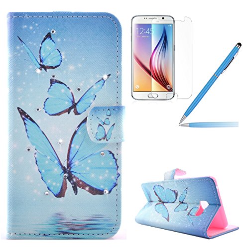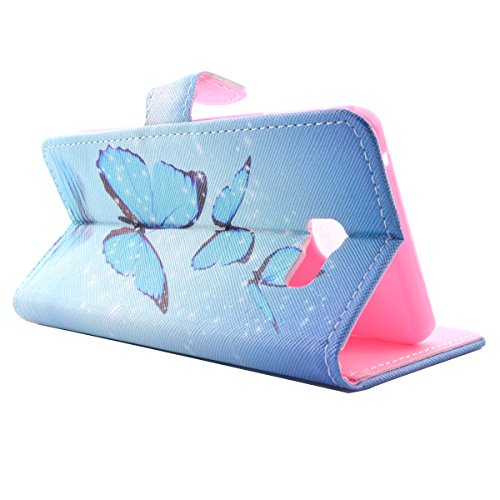 Samsung Galaxy A3 (2016) Custodia, Samsung Galaxy A3 (2016) Custodia in pelle, Felfy Lusso Elegante Blu Farfalla Design Flip PU Pelle della Protezione Portafoglio borsa Libro Cuoio Wallet Leather Supporto Stand e Porta Carte Integrati con Magnetico Custodia Case Cover per Samsung Galaxy A3 (2016), 1x Rosa Stilo Penna + 1x Protezione Schermo