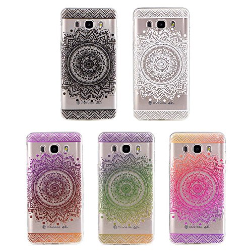 Samsung Galaxy J7(2016) Custodia, Pridot Vivido Colore Case Morbido Flessibile TPU Protettivo Cover Classico Mandala Modello Bumper per Samsung Galaxy J7(2016) Sottile Silicone Caso Rosso