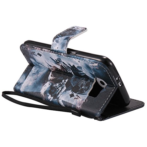 Samsung Galaxy S6 Case Custodia, Samsung Galaxy G920, con protezione per lo schermo in vetro temperato] antigraffio, fatcatparadise (TM) Custodia posteriore morbida in silicone, design colorato motivo porta carte di credito, in pelle Premium PU Magnetico Flip Folio Custodia a portafoglio per Samsung Galaxy S6/G920 Death magician
