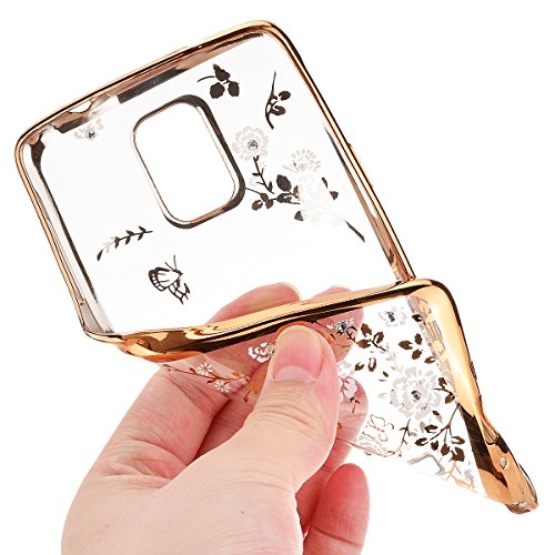 WE LOVE CASE Per Samsung Galaxy Note 4 Custodia Secret Garden Silicone TPU Shine Strass Bumper Sottile Gel Cover Trasparente Chiaro Slim Copertura Portafoglio Originale Morbida Shell Protettiva Case + Pellicola Protettiva + Spina Della Polvere + Penna Stilo Oro Frame Fiori Bianchi e Farfalla