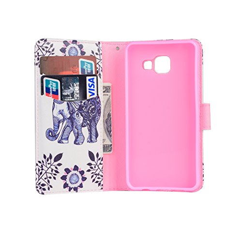 2016 Samsung Galaxy A3 custodia, Galaxy A3 sm-a310 F Flip Case, Tebeyy Premium Flower Animal Cartoon pattern custodia a portafoglio in pelle PU [chiusura magnetica] con slot per schede per Samsung Galaxy A3 (modello 2016), cavalletto, porta carte di credito, custodia a libro in pelle con pellicola protettiva e pennino, Pelle sintetica PU, Elephant leaf, Samsung Galaxy A3 (2016 Model)