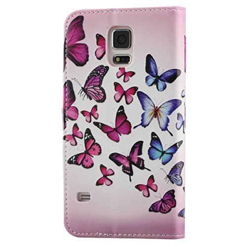 Samsung Galaxy S5 Custodia, Ukayfe Custodia portafoglio / wallet / libro in pelle - 4D Disegni Fiore Sollievo, Cover elegante e di alta qualità, Ukayfe Moda Deisng stampa dell'unità di elaborazione di vibrazione del cuoio magnetico della copertura della cassa del foglio con la copertura del supporto di carta del basamento di caso del basamento di protezione per Samsung Galaxy S5 con Stilo Penna-Rosso Farfalla