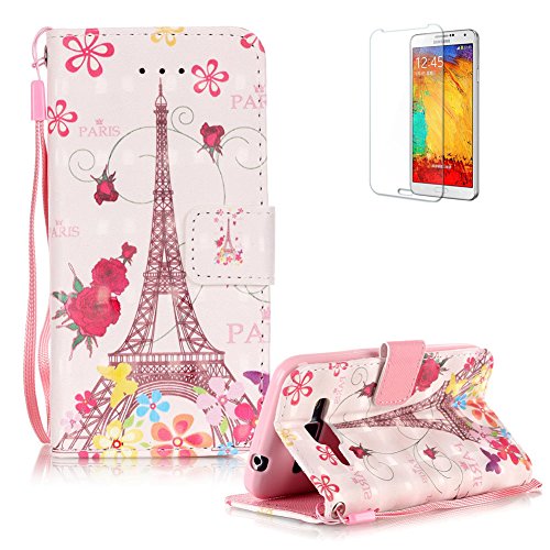Per Samsung Galaxy Grand Prime G530 Custodia in Pelle, Cover Per Samsung Galaxy Grand Prime G530 Portafoglio Funyye Elegante Fantastico 3D Disegno Libro Copertura Con Cordino + [Gratis Pellicola Protettiva] Supporto Stand Porta Carte Chiusura Magnetica protettivo Caso Shell Skin BumPer Per Samsung Galaxy Grand Prime G530 Flip Wallet Case With Hand Strap Lanyard Free Screen Protector - Fiori Torre
