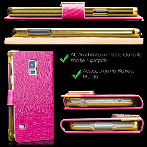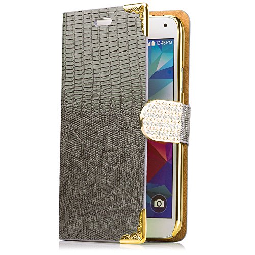 Samsung Galaxy S5 NEO & S5 | iCues coccodrillo strass tasca Khaki | [Screen protector Compresi] coccodrillo strass scintillio scintillio di lusso in pelle di Bling delle signore delle donne Ragazze Chrome - libro incernierato manicotto protettivo tasca il cellulare s Custodia Cover Case Tasca Borsa