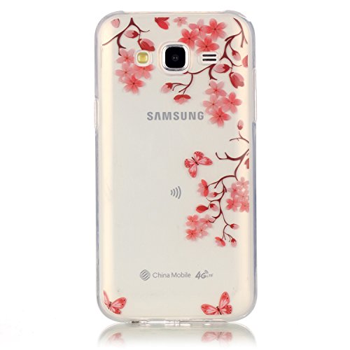 Per Samsung Galaxy J5 (2015 Model) Custodia,Funyye Morbida Sottile TPU Gel Silicone Cover Originale Antiscivolo Elegante Protettiva Caso Chiaro Copertura Slim Thin Skin Shell + Pellicola Protettiva per Samsung Galaxy J5 2015 J500FN Trasparente Soft Bumper - Fiore Rosso