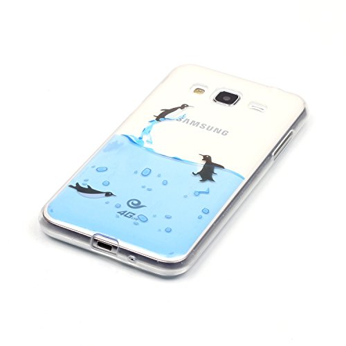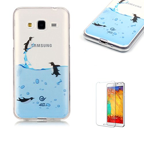 Per Samsung Galaxy J3 (2016 Model) Custodia,Funyye Morbida Sottile TPU Gel Silicone Cover Originale Antiscivolo Elegante Protettiva Caso Chiaro Copertura Slim Thin Skin Shell + Pellicola Protettiva per Samsung Galaxy J3 2016 J320 Trasparente Soft Bumper - Carino Pinguino