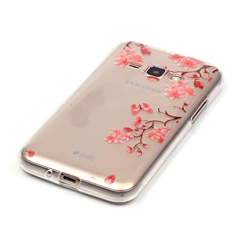 Per Samsung Galaxy J1 (2016 Model) Custodia,Funyye Morbida Sottile TPU Gel Silicone Cover Originale Antiscivolo Elegante Protettiva Caso Chiaro Copertura Slim Thin Skin Shell + Pellicola Protettiva per Samsung Galaxy J1 2016 SM-J120F Trasparente Soft Bumper - Fiore Rosso
