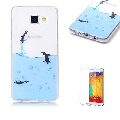 Per Samsung Galaxy A5 (2016 Model) Custodia,Funyye Morbida Sottile TPU Gel Silicone Cover Originale Antiscivolo Elegante Protettiva Caso Chiaro Copertura Slim Thin Skin Shell + Pellicola Protettiva per Samsung Galaxy A5 2016 SM-A510F Trasparente Soft Bumper - Carino Pinguino