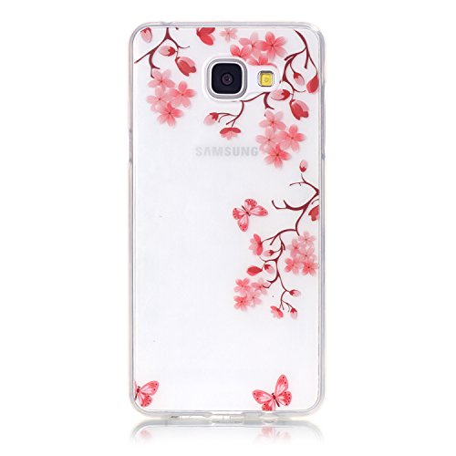 Per Samsung Galaxy A5 (2016 Model) Custodia,Funyye Morbida Sottile TPU Gel Silicone Cover Originale Antiscivolo Elegante Protettiva Caso Chiaro Copertura Slim Thin Skin Shell + Pellicola Protettiva per Samsung Galaxy A5 2016 SM-A510F Trasparente Soft Bumper - Fiore Rosso