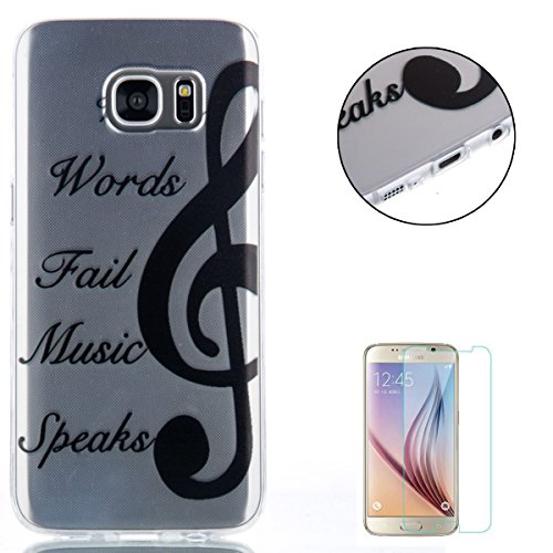 Samsung Galaxy S7 Edge gel di Silicone Caso (con Gratuito Proteggi schermo) CaseHome Retro Annata Stile Nero Stampato Modello Design Ultra Magro Sottile Cristallo Pulire Antiurto Morbido Gomma da Cancellare Trasparente Paraurti Antigraffio Protettivo TPU Astuccio Copertina Pelle Conchiglia per Samsung Galaxy S7 Edge-Musica Note