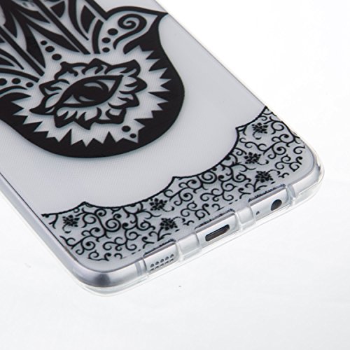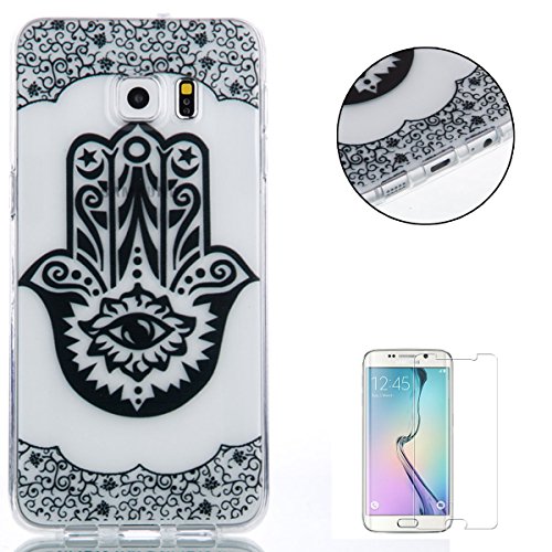 Samsung Galaxy S6 Edge Plus gel di Silicone Caso (con Gratuito Proteggi schermo) CaseHome Retro Annata Stile Nero Stampato Modello Design Ultra Magro Sottile Cristallo Pulire Antiurto Morbido Gomma da Cancellare Trasparente Paraurti Antigraffio Protettivo TPU Astuccio Copertina Pelle Conchiglia per Samsung Galaxy S6 Edge Plus-Foglia di Palma