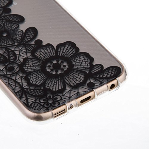 Samsung Galaxy S6 gel di Silicone Caso (con Gratuito Proteggi schermo) CaseHome Retro Annata Stile Nero Stampato Modello Design Ultra Magro Sottile Cristallo Pulire Antiurto Morbido Gomma da Cancellare Trasparente Paraurti Antigraffio Protettivo TPU Astuccio Copertina Pelle Conchiglia per Samsung Galaxy S6-Margherita