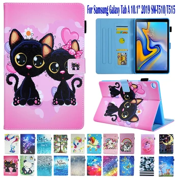 Case For Samsung Galaxy Tab A 10.1" inch 2019 SM-T510 SM-T515 10.1 inch Funda PU Leather Stand Tablet Fashion Cartoon T510 Cover