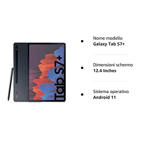 Samsung Galaxy Tab S7+ Tablet S Pen, Snapdragon 865 Plus, Display 12.4", 128GB Espandibili a 1TB, RAM 6GB, WiFi, Android 11, Mystic Black (Ricondizionato)