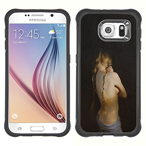 For SAMSUNG GALAXY S6 - [ ToughCase ][ Custodia ibrido ] - Girl Topless Blonde Braid Pale Skin Painting