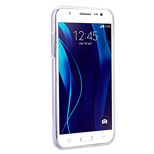 We Love Case Samsung Galaxy J5 2015 Transparente Clear Crystal Custodia, Galaxy J5 2015 4.7" Gomma TPU Gel Silicone Morbida Cover, Bumper Protettiva per Samsung Galaxy J5 2015 4.7 Pollice - Progettazione Girasole Fiore, Gradiente Colore Blu