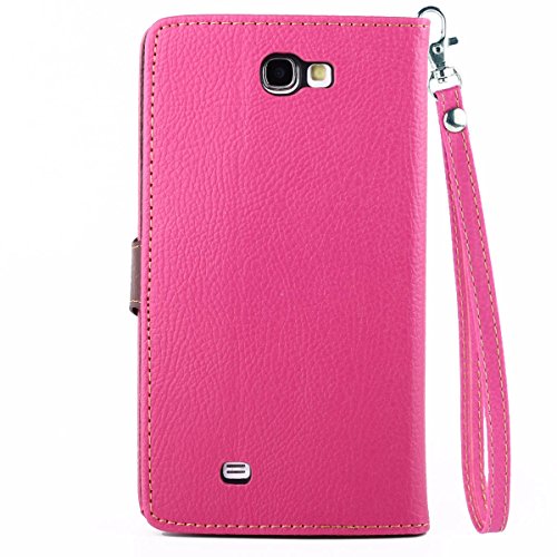 Samsung Galaxy Note 2 Case, Ukayfe Custodia portafoglio / wallet / libro in pelle per Samsung Galaxy Note 2 - Cover elegante e di alta qualità con porta carte di credito e banconote creativa fogliame Cikou progettazione Con Free Stilo Penna - rosa caldo