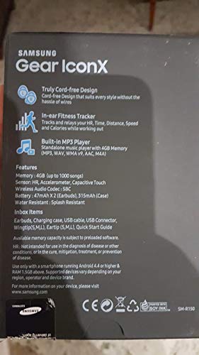Samsung Gear IconX Cuffie Stereofonico Auricolare, 89.5 Db, 47 mAh, Nero