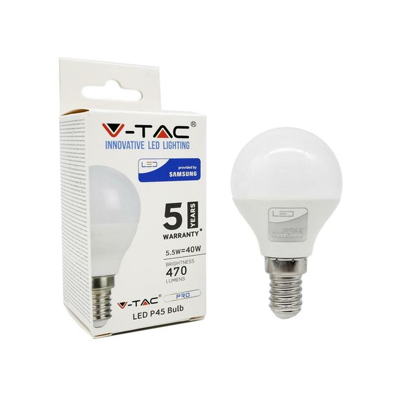 Per maggiori informazioni tecniche contattare il negozio Tecnologia: Led Attacco: E14 Alimentazione: 220-240V Forma della Lampadina: Goccia Piccola o Sfera (P45,P48,G) Necessita di trasformatore: NO Altre Caratteristiche: Diffusore Satinato (bianco non trasparente) Gradi Kelvin (K): 6400K Temperatura Colore: Luce fredda Colore della Struttura: Bianca Dimmerabile (Regolabile): No Potenza Assorbita (W): 5,5 Potenza Resa (W): 40 Fascio Luminoso (Gradi): 180 Flusso Luminoso (Lumen): 470 Garanzia (Anni): 5 anni Classe Energetica: A Tempo di Accensione al 100%: Immediato Grado di Protezione (IP): IP20 (lampadina da interno oppure da esterno se montata in apposito corpo illuminante) Numero di pezzi nella confezione: 1 Durata (Ore): 30000 Dimensioni (Cm): 4,5x8,1x8,1