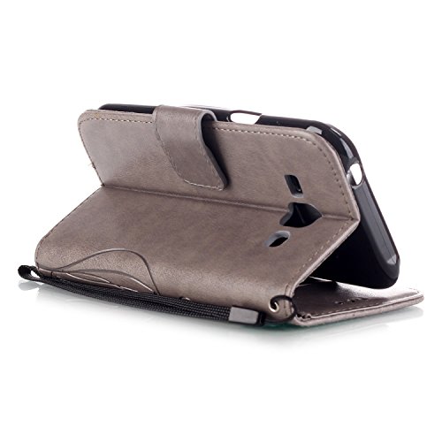 Per Samsung J1 (2015 Modello) Custodia,Funyye Per Samsung Galaxy J1 2015 Pelle Libro Copertura Con Cordino Shell Supporto Stand Porta Carte Portafoglio Flip Wallet Cover Chiusura Magnetica Proteggi Caso Elegante Fiori e Farfalle -Grigio