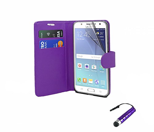 Samsung - Premium Custodia a Libro in Pelle + Pellicola Proteggi Schermo Con Panno Lucidante + Mini Touch Screen Stilo Penna By Excellent Accessories Viola Book Style Purple Samsung Galaxy J1