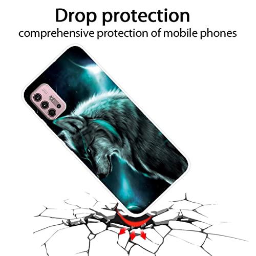 Samyje Compatibile con Custodia Motorola Moto G30/G20/G10 Cassa Morbido Ultra Magro Trasparente Case con Design a Motivo + 1*Pellicola Temperata Anti Graffio Protettiva Cover,Luna e Lupo