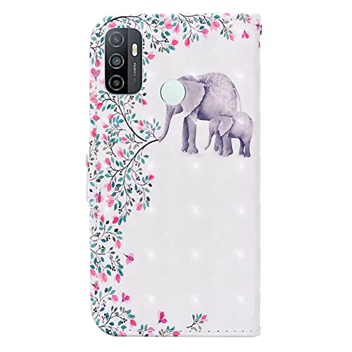Samyje Cover Compatibile con Custodia Oppo A53/A53S/A32/A33 2020 Caso PU Pelle Portafoglio Magnetica con Slot Schede Kickstand Antiurto Bumper Case - Elefanti e Fiori