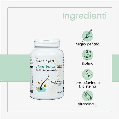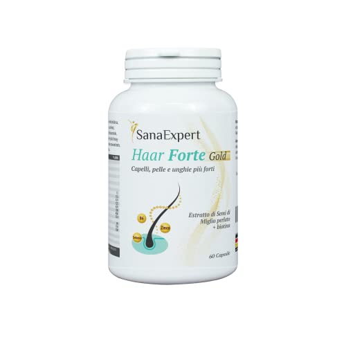 RAFFORZAMENTO E CRESCITA DEI CAPELLI: Haar Forte Gold è un integratore per capelli contenente estratto di semi di miglio perlato, D-biotina e L-metionina, che favorisce la crescita dei capelli. Inoltre, la L-cisteina cloridrato e la L-metionina aumentano la forza e la consistenza dei capelli stimolando la produzione di cheratina e migliorando la salute dei capelli.