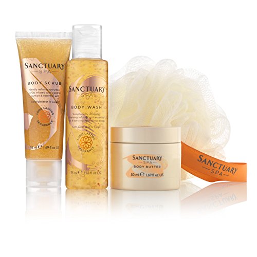Sanctuary Spa, set regalo Let Go and Unwind con gel doccia, scrub corpo e burro corpo, regalo di bellezza per donne