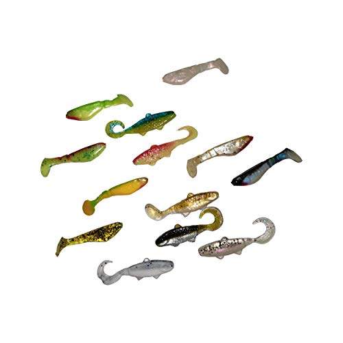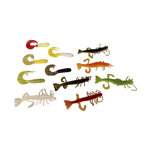 Le esche in gomma sono lunghe 5 cm, 6 cm, 7 cm e 8 cm e in diversi colori. Alcuni colori sono UV attivi e autoilluminanti. Il set di pesci di gomma è composto da: Shrimp 3", Classic 2", Turbo Twister 3", Banjo Twister 2"