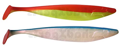 I pesci di gomma lunghi 30 cm Megalodon 12" di Shadxperts sono la perfetta esca per luccio. 2 diversi colori catturanti